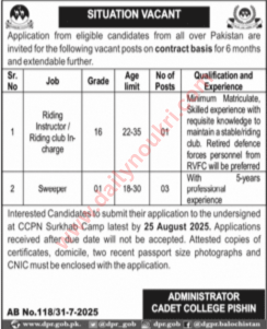 Candidates are required to submit a complete application package to the undersigned authority at CCPN Surkhab Camp no later than 25 August 2025. Any application received after the deadline will not be accepted, regardless of the reason for delay.