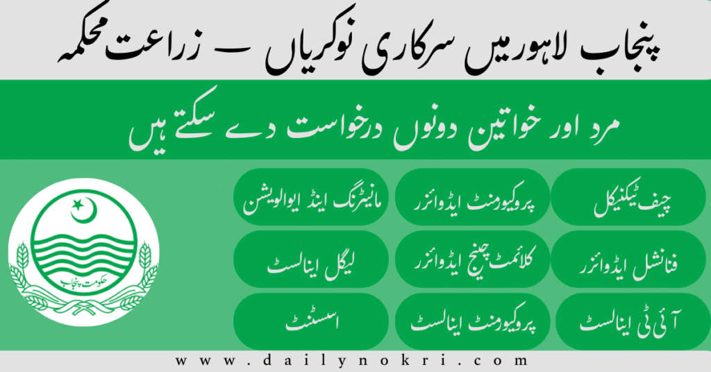 Govt Jobs in Punjab Lahore – Punjab Agriculture Dept 2025