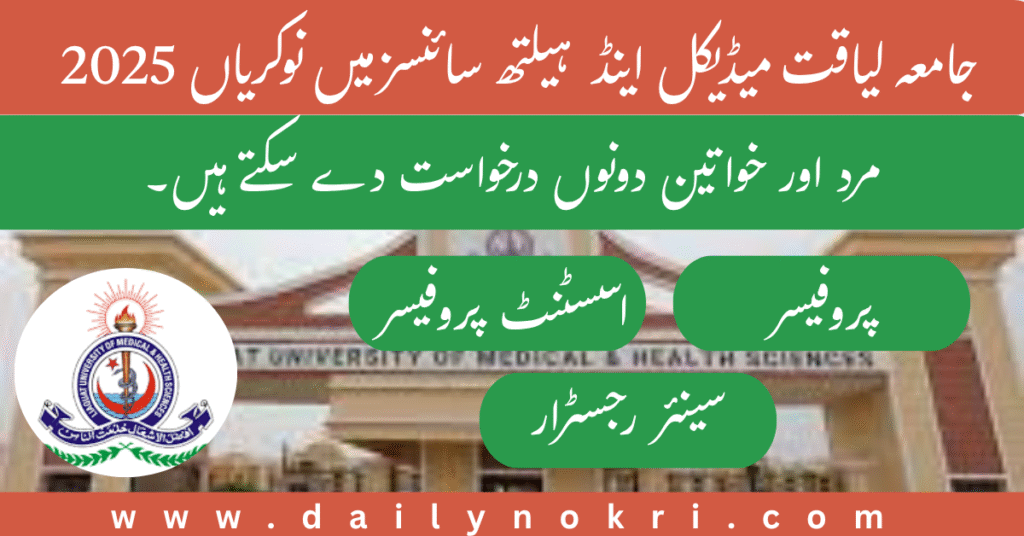 LUMHS Jobs 2025 are now open at Liaquat University of Medical & Health Sciences (LUMHS) in Jamshoro and Thatta, Sindh. Applications are invited for various faculty positions including Professors, Assistant Professors, and Senior Registrars. Eligible candidates with Sindh domicile can apply before 08 August 2025. Visit www.lumhs.edu.pk for full details.
