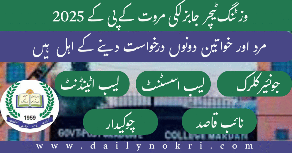 Office of the Principal / Coordination – JMC Govt. Post Graduate College Lakki Marwat invites applications from eligible candidates for teacher job KPK positions (Visiting Faculty) and Non-Teaching Staff on a purely temporary basis for the academic session 2025-2026.